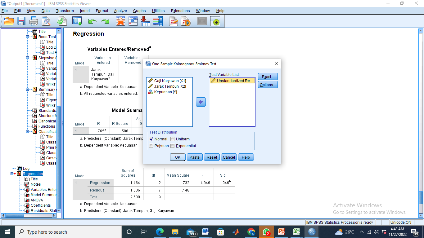 Pindahkan Unstandardized RES_1 ke kotak Test Variable List - OK