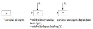 Interpretasi untuk gambar diatas yaitu variabel X tidak secara langsung mempengaruhi variabel Y namun melalui variabel Z.